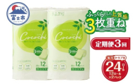 定期便 6回 トイレットペーパー ハナタバ cocochi トリプル 3枚重ね 1パック(12ロール) 再生紙 ふんわり 極厚 消臭 抗菌 緑茶の香り エンボス 紙パッケージ エコ 生活用品 日用品 防災 備蓄 毎月発送 富士市 [sf002-453]