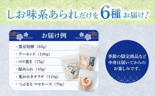 しお味系のあられを6種詰め合わせてお届けいたします。