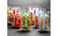 - マヨネーズ味、のり塩味、ソース味、カレー味、胡麻味、七味 各1袋(各100g)