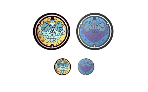 チタン製ミニチュアマンホール・メダル柏原市セット【ぶどう・シャインマスカット】