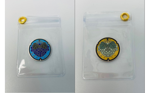 • チタン製ミニチュアマンホール・メダル柏原市セット【ぶどう・シャインマスカット】