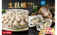 【2026年3月上旬発送】ナバラ水産 生牡蠣 殻付き【25個】むき身【1.6kg (800g×2袋)】セット