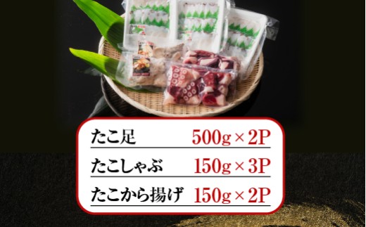 【内容量】たこ足500g×2P、たこしゃぶ150g×3P、たこから揚げ150g×2P