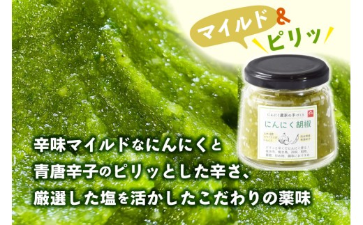 食欲そそるにんにくの風味と青唐辛子のピリッとした辛さ、厳選した塩を活かしたこだわりの薬味。