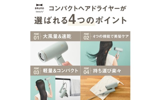 BRUNO コンパクトヘアドライヤー エクリュ ヘアドライヤー ドライヤー ブルーノ 軽量 速乾 大風量 ヘアケア イオン マイナスイオン ダメージケア コンパクト 折りたたみ式 スタイリング ヘアケア 美髪 時短 ギフト プレゼント 贈り物 お友達 家族 東京 新宿 0152-008-S07-2 2173273 - 東京都新宿区