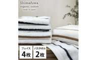 <フェイスタオル4枚・バスタオル2枚>オーガニックコットンタオルセット しまふわBR [№5385-0980]