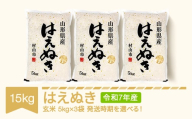 新米 米 15kg 5kg×3 はえぬき 玄米 令和7年産 2026年5月上旬 mk-haxxa15-g5a