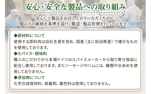 ソーセージ・ハムには国産肉を使用。味の決め手となるスパイスはドイツから取り寄せ独自にブレンドしており、他にはない美味しさを生み出しています。
