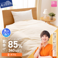 明治9年創業の川崎市の人気の寝具店がつくった、カバーいらずで丸洗いできる羽毛布団。お客様のお声をもとにつくったこだわりの逸品です。綿100%の国産先染めダブルガーゼの触り心地が至極の眠りに導きます。育ち盛りのベビーはもちろん、シニアにも軽くて柔らかな掛け心地が大好評。富士山の天然水で丁寧に洗浄した羽毛ふとんは厳しい検査基準にも合格しています。ハンガリー産ホワイトダックダウン90%使用。ダウン量は120gで一般の肌掛け布団相当。手軽にお洗濯できる軽さと気持ちよさがあり、春夏秋におすすめ。夏は冷房のきいたお部屋で大活躍してくれそうです。
