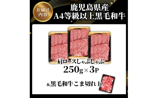 【数量限定】鹿児島県産黒毛和牛A4等級以上肩ロースしゃぶしゃぶ用 (計750g+黒毛和牛こま切れ250g×1P) 鹿児島県産 黒毛和牛 肩ロース【ビーフ倉薗】A796-v01