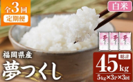 【定期便全3回】【令和7年産新米】【食味鑑定士厳選】福岡県産 夢つくし15kg (5kg×3袋) 合計 45kg【精米 お米 米 ご飯 ごはん ブランド ブランド米 夢つくし 食品 ふるさと納税 人気 おすすめ 送料無料 炊飯 炊飯器 福岡 福岡県産 筑前 筑前町 】