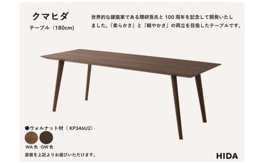 - 【飛騨の家具】HIDA クマヒダ テーブル ウォルナット 幅180(KP346U2)|飛騨高山 伝統工芸 匠 日本 和風 インテリア ダイニング 机 テーブル飛騨産業 CG454