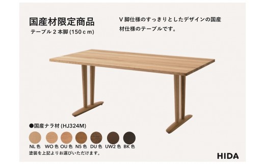 - 【飛騨の家具】HIDA国産材限定商品 テーブル 国産ナラ材仕様 V脚 W150(HJ324M)|飛騨高山 国産 机 テーブル インテリア 自然 素材 デザイン 和 飛騨産業 CG461