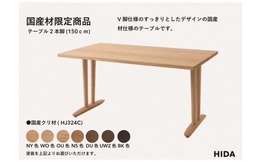 - 【飛騨の家具】HIDA国産材限定商品 テーブル 国産クリ材仕様 V脚 W150(HJ324C) |飛騨高山 国産 机 テーブル インテリア 自然 素材 デザイン 和 飛騨産業 CG469