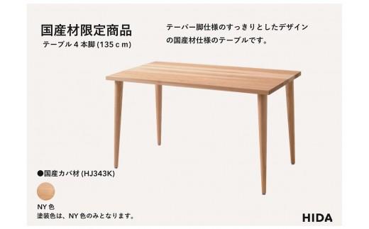 - 【飛騨の家具】HIDA国産材限定商品 テーブル 国産カバ材仕様 テーパー脚 W135(HJ343K)|素材 自然 日本 和風 インテリア 和み 国産 机 テーブル 飛騨産業 CG476