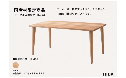 - 【飛騨の家具】HIDA国産材限定商品 テーブル 国産カバ材仕様 テーパー脚 W180(HJ346K) |素材 自然 日本 和風 インテリア 和み 国産 机 テーブル 飛騨産業 CG479