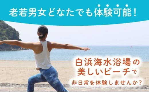 白浜海水浴場でヨガレッスン 美しいビーチで非日常体験 老若男女どなたでも体験可能! 心おだやか むくみや冷えの対策 免疫力アップ 柔軟性向上