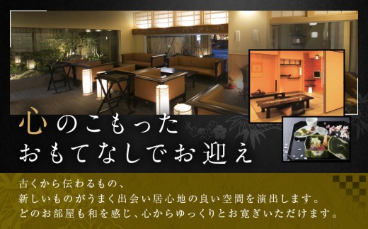 京の町なかにあるきめ細やかなおもてなしが定評の宿。お部屋は広々とした特別室で居心地の良い空間を演出します。夕食は季節を感じる月替わりの京懐石、朝食は湯豆腐や京風出し巻き等をご用意しています。