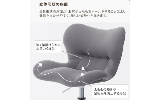短い背もたれと立体形状の座面で美姿勢をサポートします。