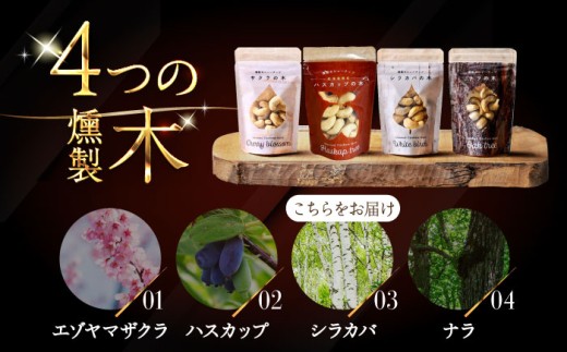 北海道厚真町並びに近隣で育った木を燻材として活用し丁寧に燻しました。