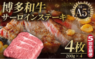 【5ヶ月連続定期便】A5,4等級 博多和牛サーロインステーキ 200g×4枚 計800g 久田精肉店【福岡県須恵町】