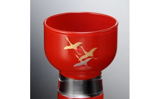• みよし漆器本舗 紀州塗り ぬりもん de Verre 盃 蒔絵 千羽鶴 赤 70ml