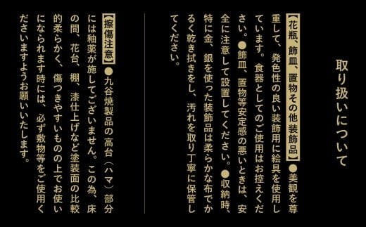 〇収納時、特に金、銀を使った装飾品は柔らかな布でかるく乾拭きし、汚れを取り丁寧に保管して下さい。