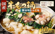 【2025年11月発送】 国産牛 もつ鍋 12人前 ちゃんぽん 2つの味が楽しめる濃縮スープ付 (醤油味&みそ味) 冷凍 国産 もつ もつ鍋セット
