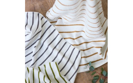 ・【しまふわ】しましまなボーダーとやわらかい肌触りが気持ち良い。綿花本来の油分を少し残すことで、柔軟剤を使わなくても綿本来の柔らかさが楽しめる、ふんわりとした肌触りを実現しました。