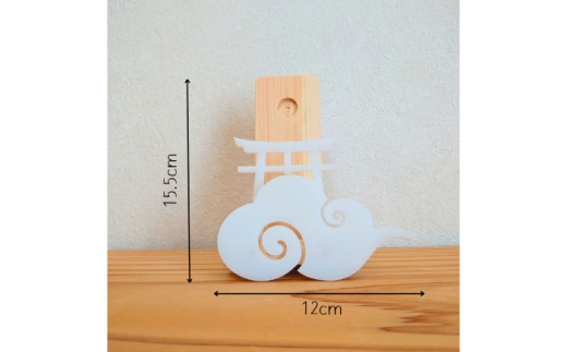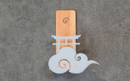 「雲」と「鳥居」をモチーフにした意匠で、神々しさを保ちながらも現代のリビングや玄関に溶け込みます。