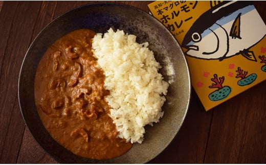 厳選した新鮮な生餌で育った大月町産本マグロのホルモンを使用してスパイシーなカレーに仕上げました。