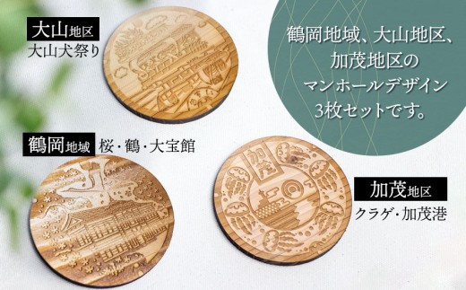 • つるおかマンホールデザインコースター 3枚セット 鶴岡市上下水道部下水道課