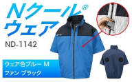Nクール®ウェア(男女兼用) 半袖 ND-1142(20Vスターターキット)セット ウェア色 ブルー 2L ファンカラー:ブラック F4N-2055