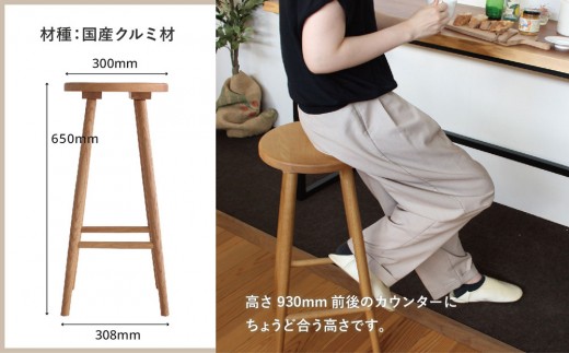 - クルミのハイスツール | 椅子 チェア インテリア シンプル 木製 ヒダコレ家具 GF045