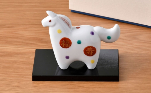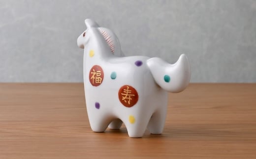 - 【波佐見焼】干支飾り 馬 水玉福寿紋 午 インテリア 置物【ふきの陶】 [NF20]
