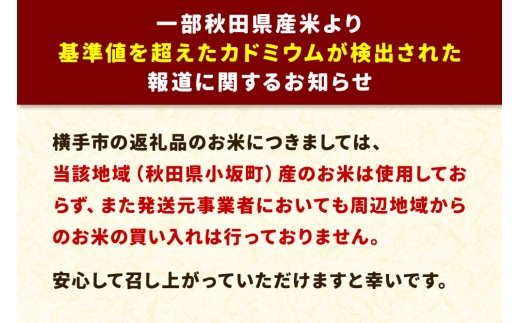 秋田県横手市産あきたこまちをご賞味ください。炊き立てはもちろん、冷めてもおいしいお米あきたこまち100%です。