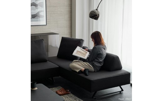 ミゲル ソファ 200cm 3人掛け チャコールブラック【モーブル】【大川家具】