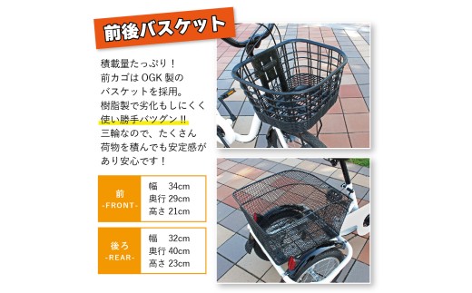 ●カゴサイズ:前カゴ約W34×D29×H21cm、後カゴ約W32×D40×H23cm
