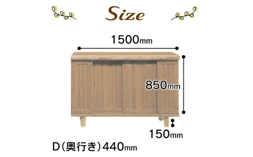 サイズ:幅150cm×奥行44cm×高さ85cm(+脚15cm)