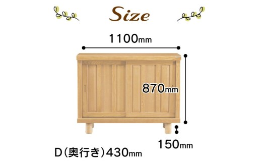 サイズ:幅110cm×奥行43cm×高さ87cm(+脚15cm)