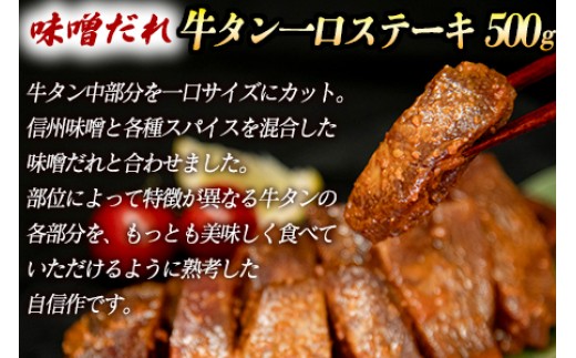 - 厚切り牛タン(漬け込み熟成)400g×2、牛タン一口ステーキ(味噌だれ)250g×2 計1,300g