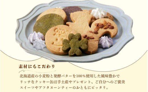 北海道産の小麦粉と発酵バターを100%使用した風味豊かでリッチなクッキー缶は