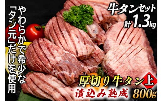 - 厚切り牛タン 計1300gセット 厚切り牛タン (漬込み熟成) + 牛タン一口ステーキ (味噌だれ) 牛タンスライス (赤タレ) 牛たん 厚切り 味付け肉 牛肉 お肉 小分け 焼肉 焼き肉 キャンプ BBQ アウトドア バーベキュー おうち焼肉 味付き 焼くだけ 簡単 簡単調理 おかず 真空パック