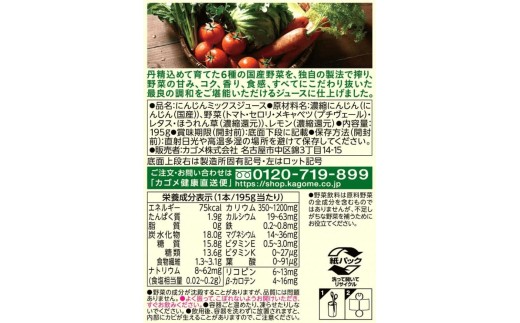 ■原材料名:濃縮にんじん (にんじん/ 国産)、野菜 (トマト・セロリ・メキャベツ (プチヴェール)・レタス・ほうれん草 (濃縮還元 ))、レモン(濃縮還元 /海外産)