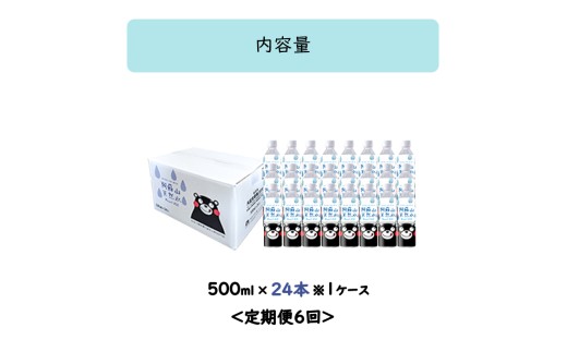 - 【ふるくま】定期便 6回 阿蘇山 天然水 500ml × 24本 1ケース 熊本 阿蘇 水 みず 飲料 くまモンラベル 熊本県 ミネラルウォーター 非加熱殺菌 賞味期限2年 730日 備蓄 保存用