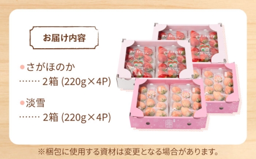 【R8年1月以降発送】紅白いちごセット(淡雪・さがほのか ) 計1.7kg以上(各220g×4パック) 【岸川農園】 [IAP049]