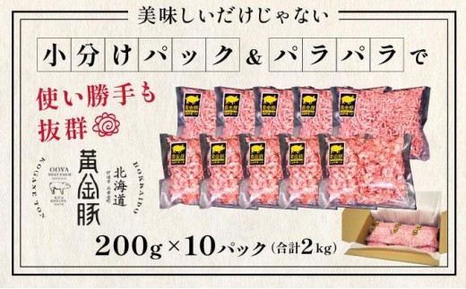 <11月発送><黄金豚>ブランドポーク 北海道 豚ひき肉 あら挽き 200g 10パック 計2kg | 伊達産 黄金豚 三元豚 ミンチ 挽肉 お肉 小分け ハンバーグ 餃子 カレー 大矢 オオヤミート 冷凍 送料無料