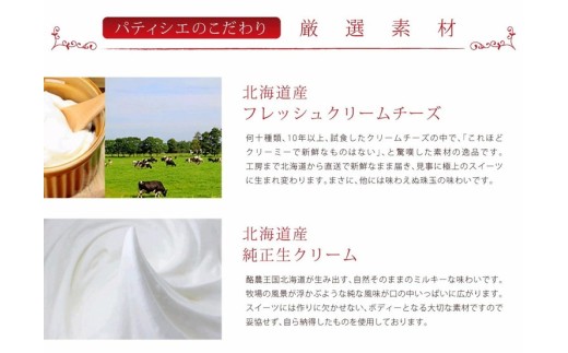 クリームチーズ、生クリーム、砂糖、バター、卵、ヨーグルト、牛乳、マーガリン、小麦粉、ラズベリー、ブルーベリー、アーモンド、乳製品、ゼラチン、植物油脂、乳/乳化剤、香料、メタリン酸Na、安定剤、(原材料の一部に乳成分・卵・小麦・アーモンド・ゼラチン・大豆を含む)