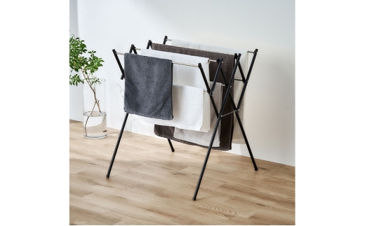 - 物干し 伸縮タオル干し SWX-700RC ブラック タオルハンガー タオル干し アイリスオーヤマ スタンド ハンガー コンパクト ステンレス 伸縮 省スペース タオルスタンド スリム ラック 室内物干し 洗濯物干し 物干しスタンド 部屋干し タオル