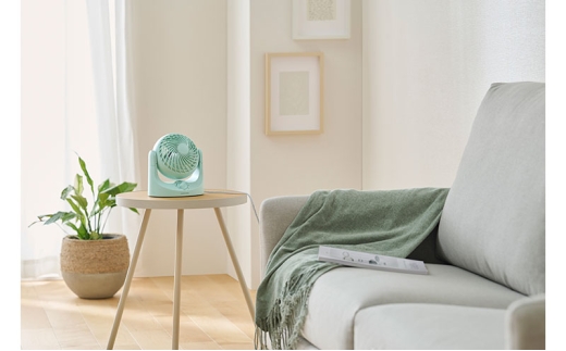 マカロンのようにコロンとしたフォルムの卓上扇風機です。